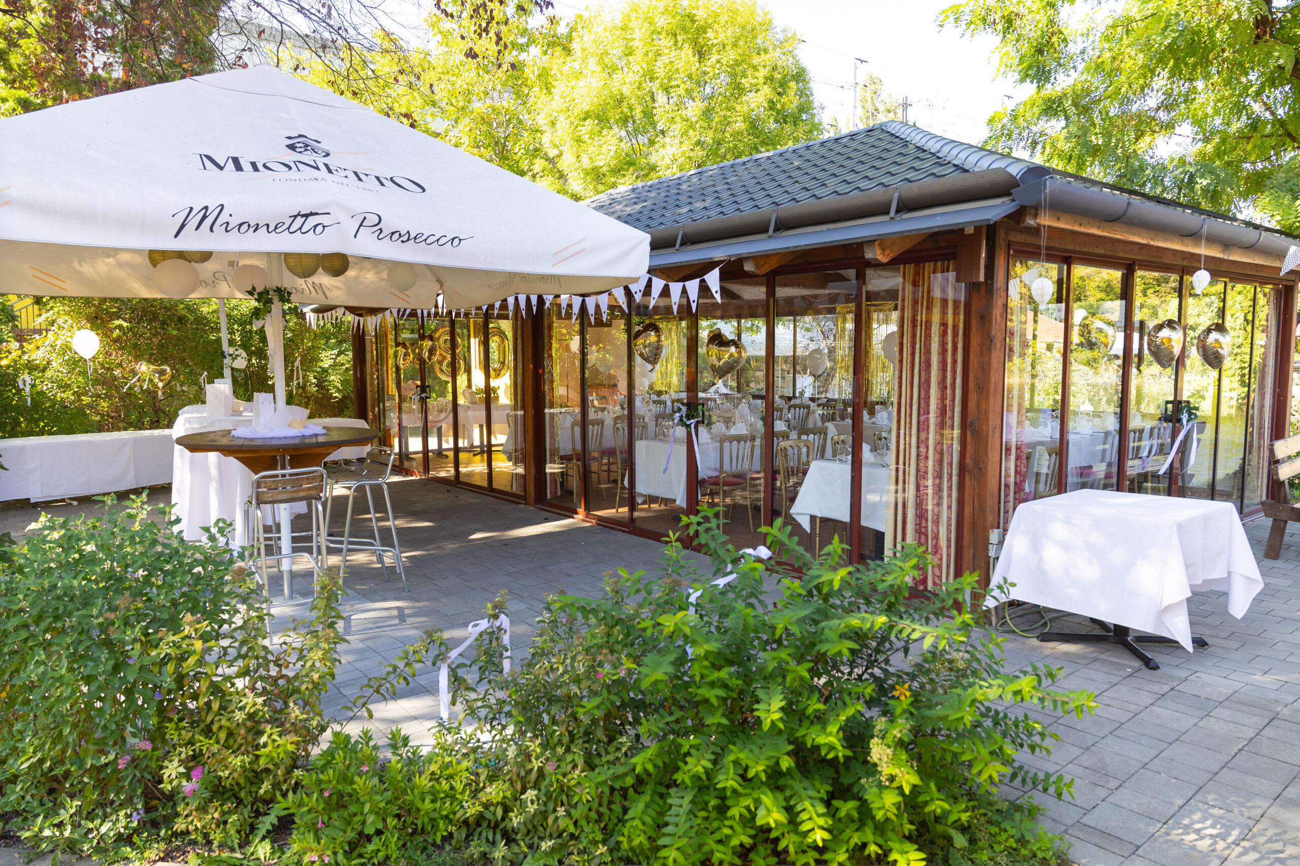 Für Gesellschaften ab 80 bis max. 150 Personen bieten wir unser großes Veranstaltungshaus „Haus Crêperie“  mit dazu gehörenden Terrassen an, ab 55 Personen bis max. 90 Personen bieten wir unser Bootshaus an und für kleinere Feste ab 35 Personen bis max. 60 Personen wäre unser Haus „Seeterrasse“ für Ihre Feier bereit. Wichtige Infos zu unseren Feiern  Bei nicht erreichen der Mindestpersonenanzahl wird eine Aufzahlung von €50,00 pro fehlendem Gast als Raummiete verrechnet.